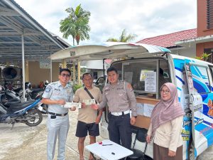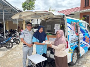 Petugas Samsat Keliling memberikan pelayanan dengan ramah dan profesional, memastikan setiap wajib pajak mendapatkan pelayanan terbaik. Antrian tertata dengan baik, dan seluruh proses berjalan sesuai prosedur yang telah ditetapkan.