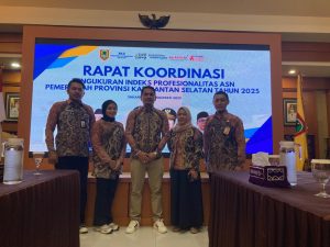 Banjarbaru, 15 Desember 2025 — Unit Pelayanan Pendapatan Daerah (UPPD) Banjarbaru menghadiri Rapat Koordinasi Pengukuran Indeks Profesionalitas Aparatur Sipil Negara (ASN) Tahun 2025 yang diselenggarakan oleh Badan Kepegawaian Daerah (BKD) pada hari Jumat 12 Desember 2025, bertempat di Ruang Rapat Badan Penghubung Pemerintah Provinsi Kalimantan Selatan, JL. Biliton No. 09, Jakarta Pusat.
