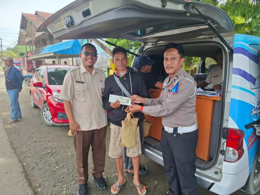 GIAT PERDANA SANTIKU (SAMSAT PERINTIS KOTABARU) DI KECAMATAN KELUMPANG HULU DESA SUNGAI KUPANG, KOTABARU SEKALIGUS PENYERAHAN SEMBAKO BAGI 20 WAJIB PAJAK PERTAMA YANG MELAKUKAN PEMBAYARAN PAJAK KENDARAAN BERMOTOR