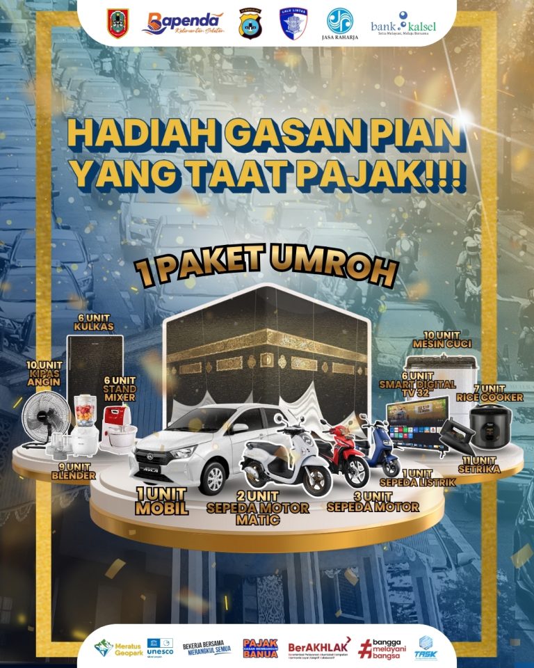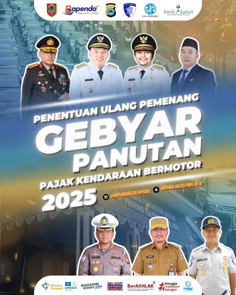 Badan Pendapatan Daerah (Bapenda) Provinsi Kalimantan Selatan akan melaksanakan Pengundian/Penentuan Ulang Hadiah Gebyar Panutan Pajak sebagai tindak lanjut atas hadiah yang tidak diambil oleh pemenang pada periode sebelumnya.