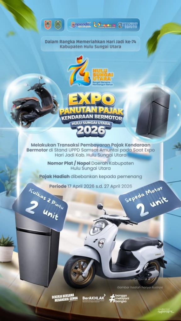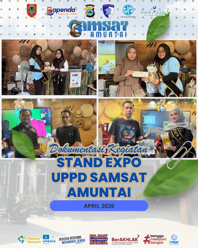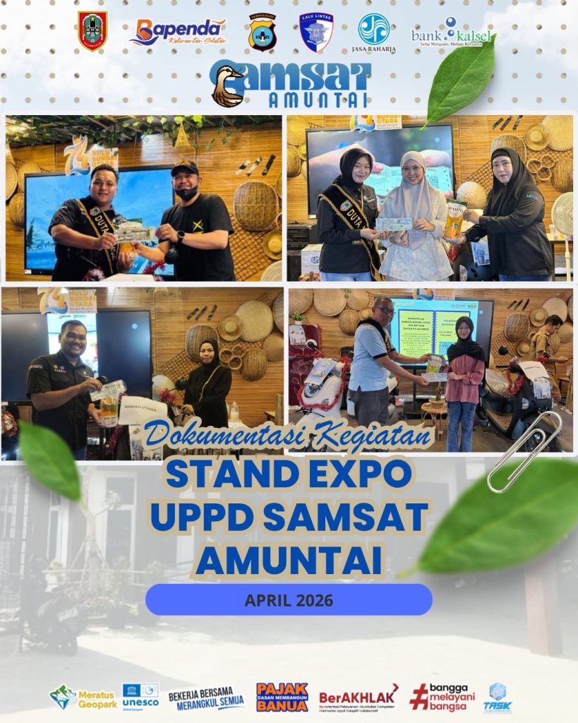 Amuntai, April 2026,- UPPD SAMSAT Amuntai terus berinovasi dalam memberikan pelayanan terbaik kepada masyarakat melalui keikutsertaannya dalam kegiatan Stand Expo. Dalam kegiatan ini, masyarakat tidak hanya mendapatkan kemudahan dalam pelayanan pembayaran pajak kendaraan bermotor, tetapi juga berbagai bentuk apresiasi yang menarik.
