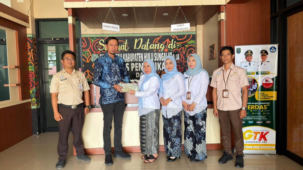 Amuntai, 21 April 2026,- Kepala Seksi Pelayanan PKB/BBNKB UPPD SAMSAT Amuntai beserta staf melaksanakan penyerahan STNK kepada beberapa kendaraan dinas milik Dinas Pendidikan Kabupaten Hulu Sungai Utara (HSU) yang telah menyelesaikan kewajiban pembayaran pajak kendaraan bermotor.