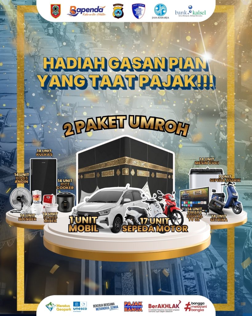 Kami mengundang seluruh masyarakat untuk bergabung dalam acara Puncak Gebyar Panutan Pajak Kendaraan Bermotor Tahun 2025! Sebagai bentuk apresiasi atas kepatuhan wajib pajak, acara ini akan memberikan kesempatan bagi peserta untuk memenangkan berbagai hadiah menarik.