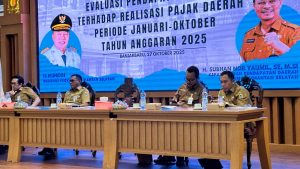 Banjarbaru – Unit Pelayanan Pendapatan Daerah (UPPD) Banjarbaru menghadiri Rapat Evaluasi Pendapatan Daerah terhadap Realisasi Pajak Daerah Periode Januari hingga Oktober Tahun Anggaran 2025, yang dilaksanakan pada Senin, 27 Oktober 2025.