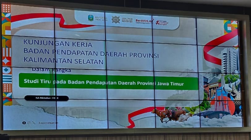 Dalam menindaklanjuti hal tersebut, UPPD Banjarmasin 1 bersama dengan Badan Pendapatan Daerah Provinsi Kalimantan Selatan dan UPPD seluruh Kalimantan Selatan, melakukan Studi Tiru ke Badan Pendapatan Daerah Provinsi Jawa Timur yang dilaksanakan pada Selasa, 14 Oktober 2025.