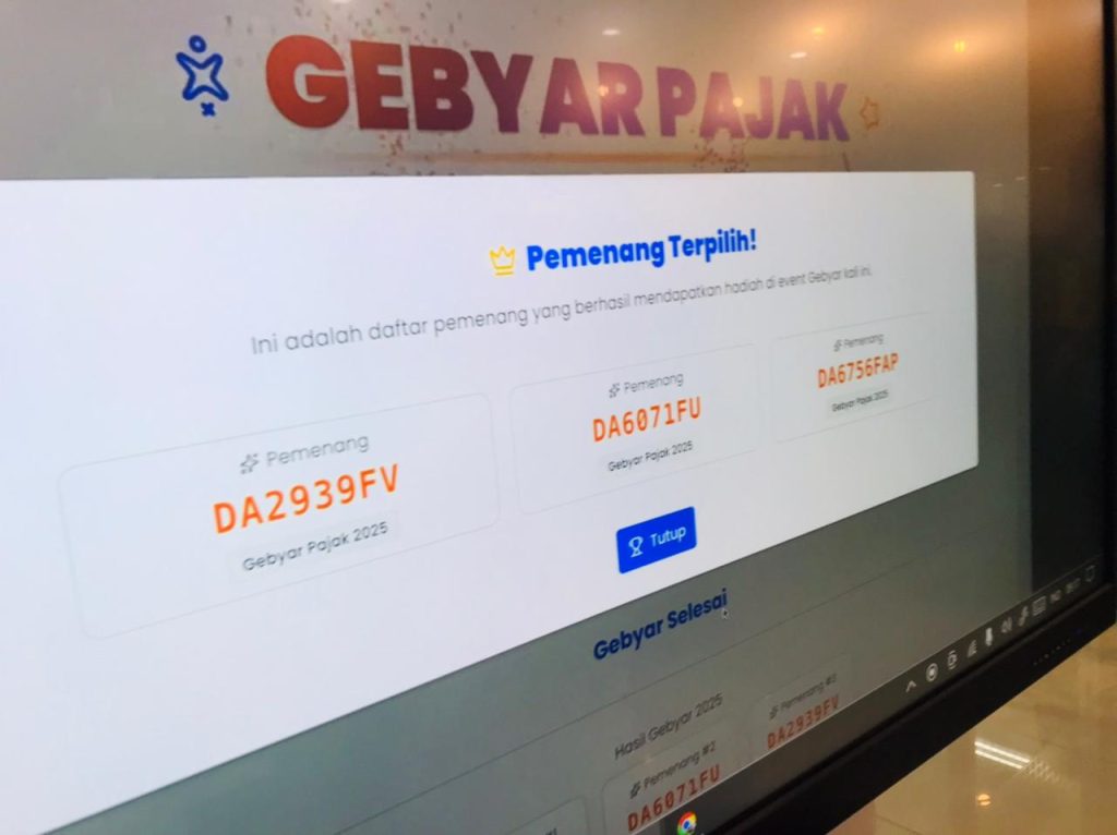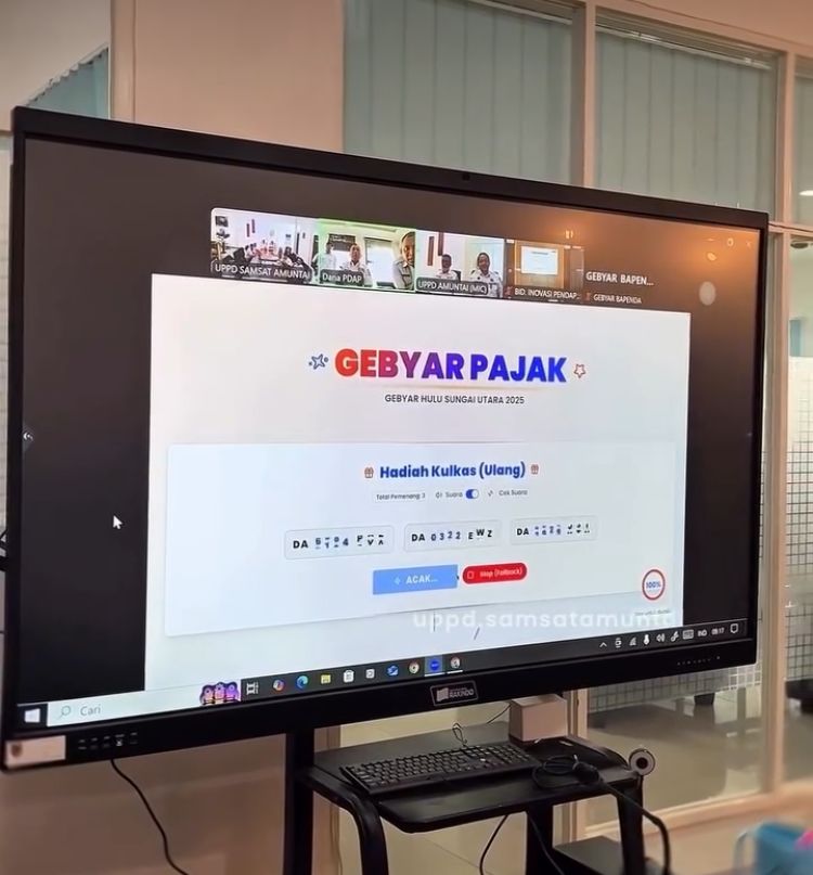 Amuntai – Rabu, 24 Desember 2025, UPPD Amuntai bersama Bapenda Kabupaten Hulu Sungai Utara melaksanakan pengundian ulang hadiah Gebyar Panutan Pajak Kendaraan Bermotor berupa 3 (tiga) unit kulkas. Kegiatan ini dilaksanakan secara Zoom Meeting bersama Bapenda Provinsi Kalimantan Selatan dan bertempat di Ruang Rapat Kantor UPPD Amuntai.