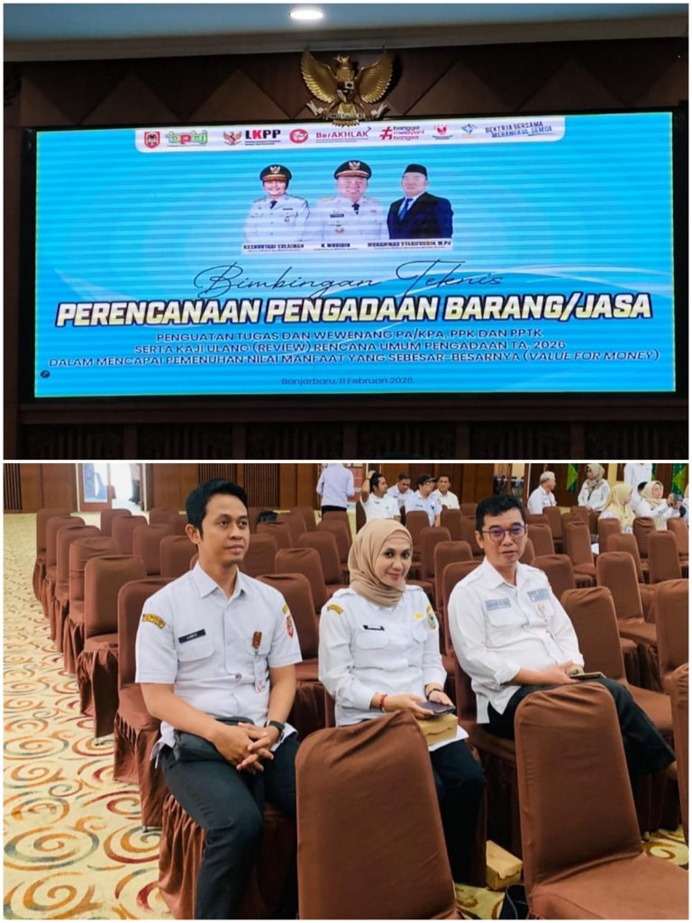 Banjarbaru, 11 Februari 2026 – Kepala UPPD Amuntai bersama Kepala Sub Bagian Tata Usaha dan Staf UPPD Amuntai mengikuti kegiatan Bimbingan Teknis (Bimtek) Perencanaan Pengadaan Barang/Jasa Pemerintah yang diselenggarakan oleh Sekretariat Daerah Pemerintah Provinsi Kalimantan Selatan di Gedung Idham Chalid, Kantor Gubernur Kalimantan Selatan.
