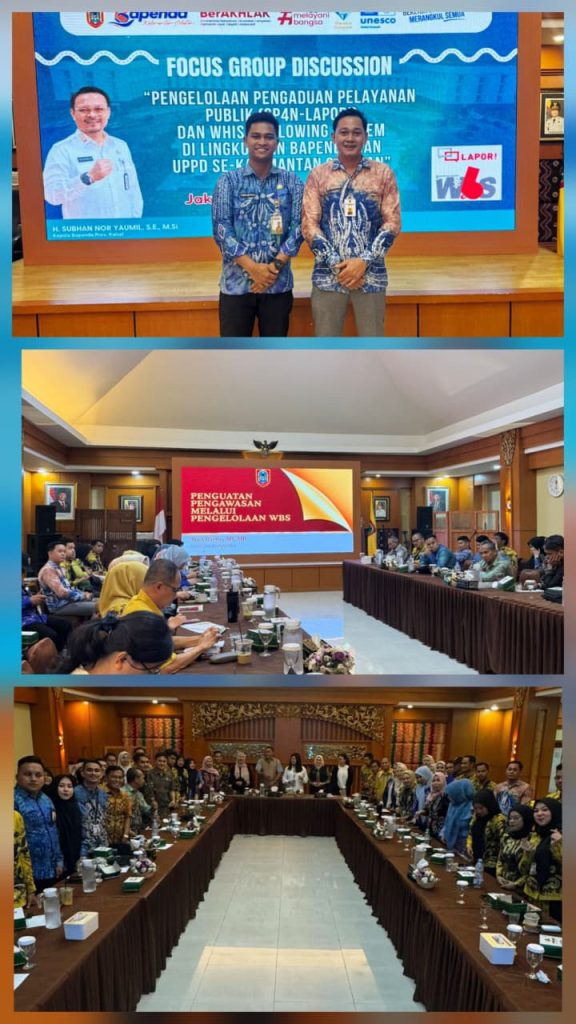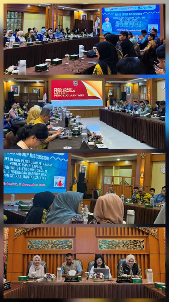 Unit Pelaksana Pelayanan Pendapatan Daerah (UPPD) Barabai mengikuti Focus Group Discussion (FGD) pembangunan Zona Integritas terkait penguatan pengawasan khususnya pengelolaan pengaduan masyarakat dengan aplikasi SP4N Lapor dan Whistleblowing System (WBS). Kegiatan ini dilaksanakan pada tanggal 2-4 Nopember 2025 di Aula Kantor Badan Penghubung Provinsi Kalimantan Selatan di Jakarta.
