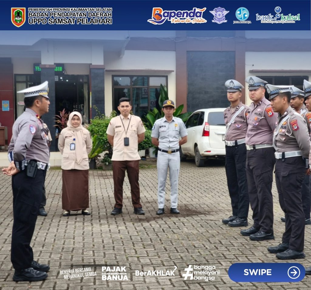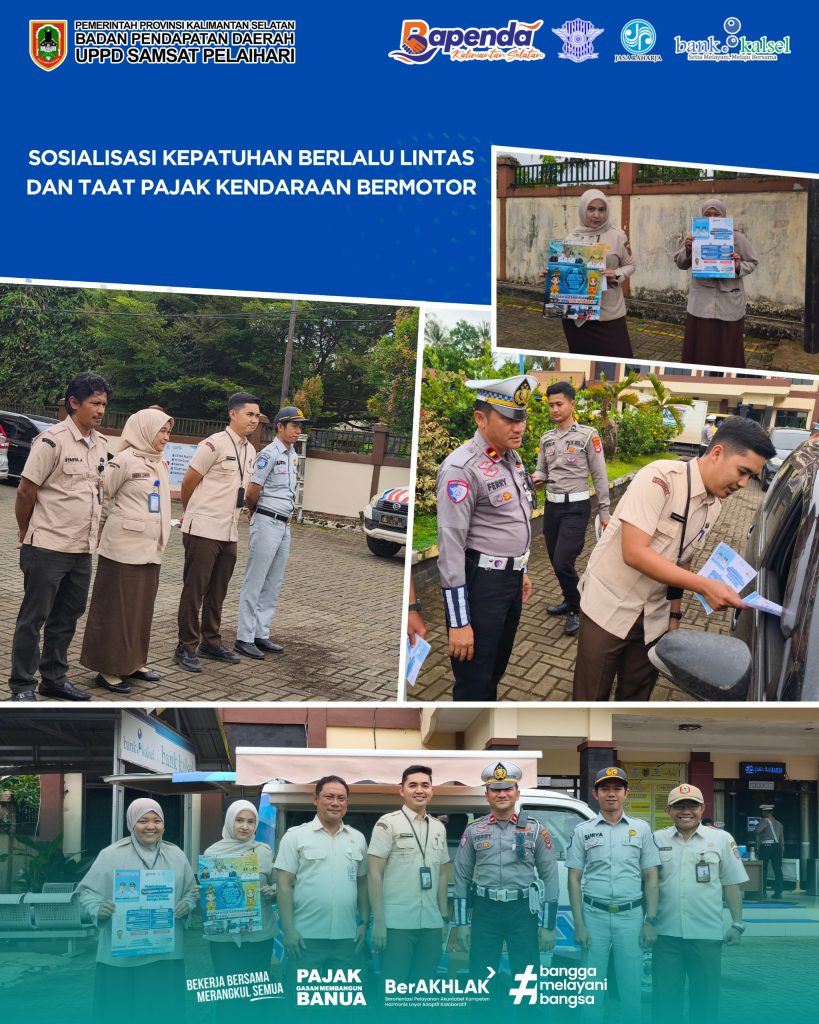 Selasa, 4 November 2025 Unit Pelayanan Pendapatan Daerah (UPPD) Pelaihari Bersama Satlantas Polres Tanah Laut dan Jasa Raharja melaksanakan Sosialisasi Kepatuhan Berlalu Lintas dan Program Pemutihan Pajak Kendaraan Bermotor 2025 di depan Kantor Unit Pelayanan Pendapatan Daerah (UPPD) Pelaihari.